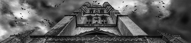 Upon a cliff that towers towards the trees